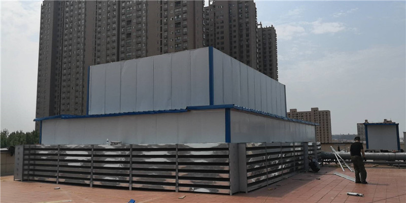 開封 尉氏 建興廣場樓頂布置有兩臺型號為YSPA1150YE的螺桿式風冷熱泵機組。該機組距離近的居民樓25米左右。居民樓為高層建筑。